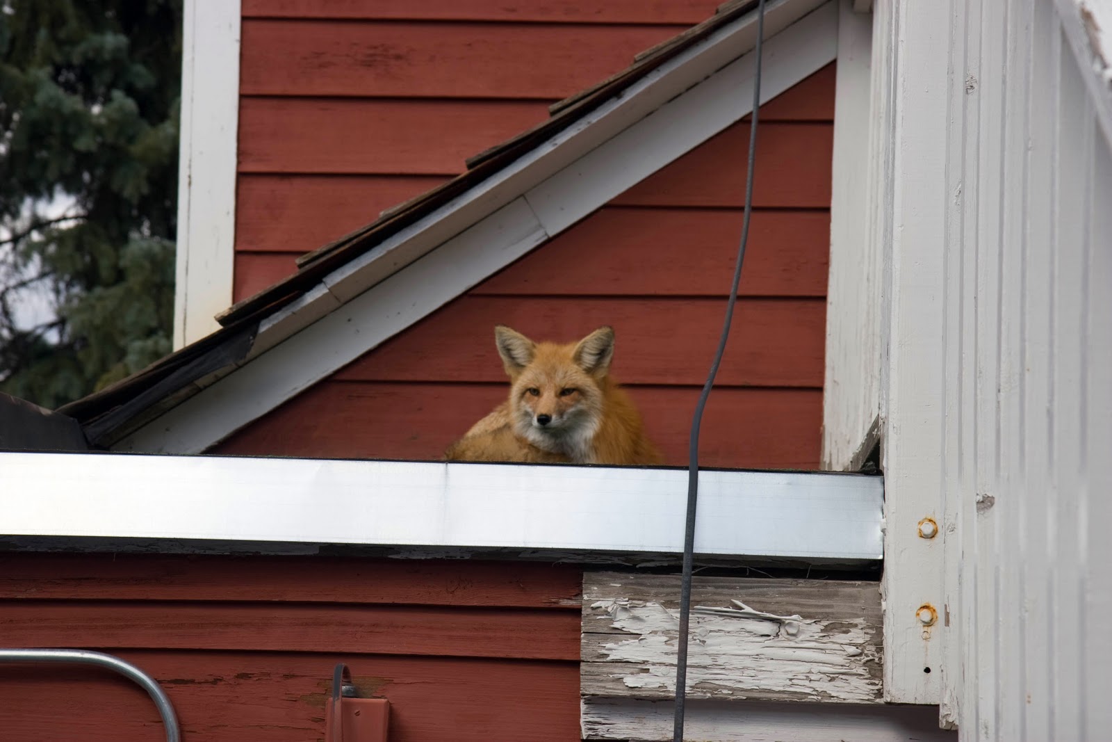 For the last number of years th Breckenridge Associates Real Estate office has had an un-official lodger. I took the photo of this vixen this morning sitting at the top of our back staircase just watching the comings and goings of our company. Quite often, especially in winter, if you look at our roof from Main Street in Breckenridge you can see her watching all the traffic!
